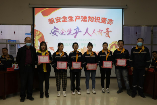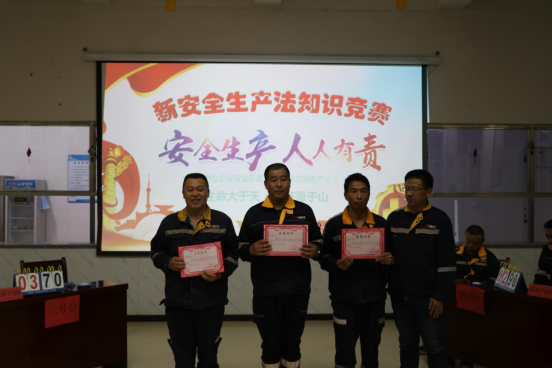為鞏固宣貫成果,特別是提高全體員工對《新安法》的了解,提高員工安全意識,公司舉行了《新安法》知識競賽,十個隊伍參加了比賽,經過初賽和復賽,一等獎獲得者:選廠3隊,二等獎獲得者:財務行政人力資源聯隊,質檢化驗聯隊,三等獎獲得者:采礦1隊,采礦2隊,選礦1隊,還有四個隊伍榮獲紀念獎。本次安全知識競賽使公司《新安法》宣貫活動進一步推向了深入,提高了員工的安全防范意識和應對事故的處理能力,豐富了員工的業余文化生活,為進一步落實安全生產責任制,有效防止安全事故的發生提供了有利保障。