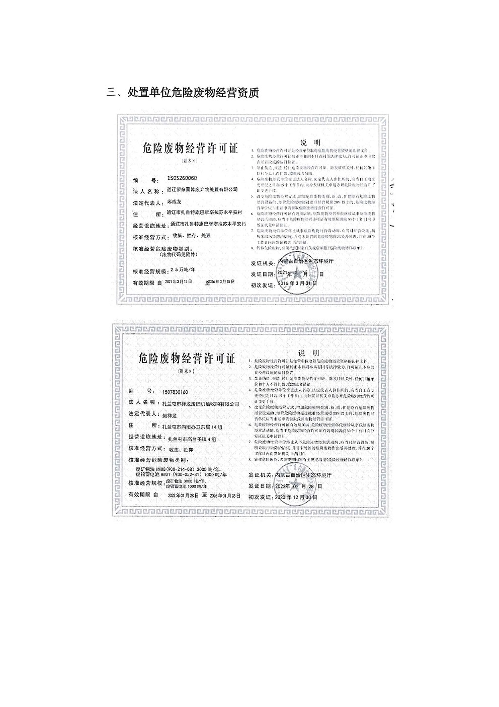 扎蘭屯市國森礦業(yè)有限責任公司危險廢物管理信息公開